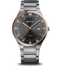 Le bracelet de haute qualité en Titane - couleur : Argent - avec Boucle pliante vous procurera un plaisir supplémentaire avec votre nouvelle montre Bering. Le bracelet Titane offre un grand confort et peut être porté jusqu'à un tour de poignet maximal de 210 mm.