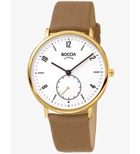 Le bracelet de haute qualité en Tissue - couleur : Beige - avec Buckle vous procurera un plaisir supplémentaire avec votre nouvelle montre Boccia. Le bracelet Tissue offre un grand confort et peut être porté jusqu'à un tour de poignet maximal de 185 mm.