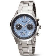 qui garantit une mesure précise du temps, comme c'est habituellement le cas pour les montres Boccia, et qui offre les fonctions suivantes : Heure, Minute, Second, Date, Chronographe, 24 heures.