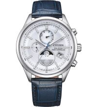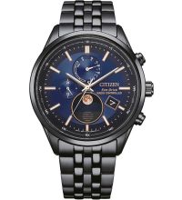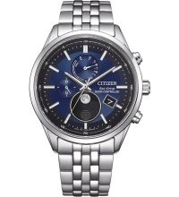 qui garantit une mesure précise du temps, comme c'est habituellement le cas pour les montres Citizen, et qui offre les fonctions suivantes : Heure, Minute, Second, Date, Chronographe, Phase de la lune, Horloge radiocommandée, 24 heures, Solaire, Calendrier perpétuel.