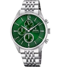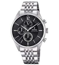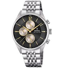 qui garantit une mesure précise du temps, comme c'est habituellement le cas pour les montres Festina, et qui offre les fonctions suivantes : Heure, Minute, Second, Date, 24 heures, Chronographe.