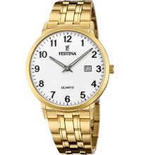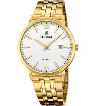 Le bracelet de haute qualité en Acier - couleur : Or - avec Boucle pliante vous procurera un plaisir supplémentaire avec votre nouvelle montre Festina. Le bracelet Acier offre un grand confort et peut être porté jusqu'à un tour de poignet maximal de 200 mm.