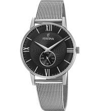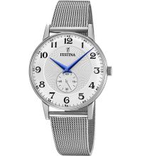 Le bracelet de haute qualité en Acier - couleur : Argent - avec Boucle du clip vous procurera un plaisir supplémentaire avec votre nouvelle montre Festina. Le bracelet Acier offre un grand confort et peut être porté jusqu'à un tour de poignet maximal de 210 mm.