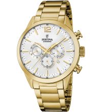 Le bracelet de haute qualité en Acier - couleur : Or - avec Boucle pliante vous procurera un plaisir supplémentaire avec votre nouvelle montre Festina. Le bracelet Acier offre un grand confort et peut être porté jusqu'à un tour de poignet maximal de 200 mm.
