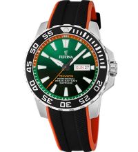 Le Verre saphir, anti-reflet offre une protection étendue contre les éraflures et les blessures involontaires. En dessous, le cadran de votre nouvelle montre de rêve est de couleur Vert, Noir. Les Aiguilles lum., index lum. contribuent à l'éclairage de la Festina F20662/2 et permettent une bonne lisibilité même dans des conditions d'éclairage défavorables.