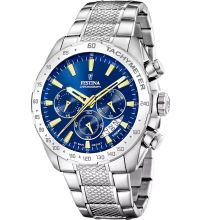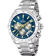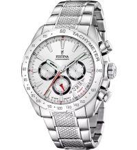 qui garantit une mesure précise du temps, comme c'est habituellement le cas pour les montres Festina, et qui offre les fonctions suivantes : Heure, Minute, Second, Date, Chronographe, 24 heures, Jour de la semaine, Tachymètre.