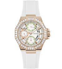 Le Verre minéral, trempé offre une protection étendue contre les éraflures et les blessures involontaires. En dessous, le cadran de votre nouvelle montre de rêve est de couleur Blanc. Les Aiguilles lum. contribuent à l'éclairage de la Guess GW0695L3 et permettent une bonne lisibilité même dans des conditions d'éclairage défavorables.