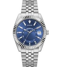 Le trempé, Verre minéral offre une protection étendue contre les éraflures et les blessures involontaires. En dessous, le cadran de votre nouvelle montre de rêve est de couleur Bleu. Les Aiguilles lum., index lum. contribuent à l'éclairage de la Guess GW0977G1 et permettent une bonne lisibilité même dans des conditions d'éclairage défavorables.