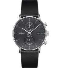 qui garantit une mesure précise du temps, comme c'est habituellement le cas pour les montres Junghans, et qui offre les fonctions suivantes : Heure, Minute, Second, Date, Chronographe.