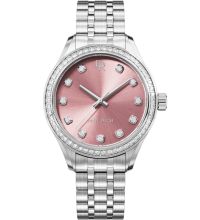 Le Verre minéral, trempé offre une protection étendue contre les éraflures et les blessures involontaires. En dessous, le cadran de votre nouvelle montre de rêve est de couleur Rose.