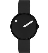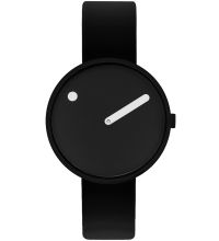| Picto® remet en question l'idée d'une montre classique avec deux aiguilles et un cadran avec des chiffres. Ici, l'heure est indiquée par un point sur le cadran rotatif, tandis que les minutes sont indiquées par une aiguille traditionnelle. |  |