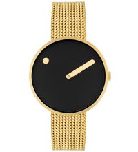 | Picto® remet en question l'idée d'une montre classique avec deux aiguilles et un cadran avec des chiffres. Ici, l'heure est indiquée par un point sur le cadran rotatif, tandis que les minutes sont indiquées par une aiguille traditionnelle. |  |