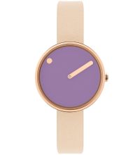 Picto® remet en question l'idée d'une montre classique avec deux aiguilles et un cadran avec des chiffres. Ici, l'heure est indiquée par un point sur le cadran rotatif, tandis que les minutes sont indiquées par une aiguille traditionnelle.