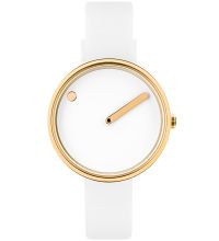 Picto® remet en question l'idée d'une montre classique avec deux aiguilles et un cadran avec des chiffres. Ici, l'heure est indiquée par un point sur le cadran rotatif, tandis que les minutes sont indiquées par une aiguille traditionnelle.