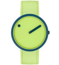 Picto® remet en question l'idée d'une montre classique avec deux aiguilles et un cadran avec des chiffres. Ici, l'heure est indiquée par un point sur le cadran rotatif, tandis que les minutes sont indiquées par une aiguille traditionnelle. |  |