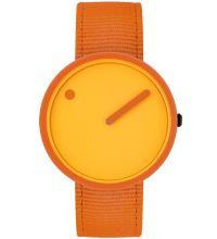 | Picto® remet en question l'idée d'une montre classique avec deux aiguilles et un cadran avec des chiffres. Ici, l'heure est indiquée par un point sur le cadran rotatif, tandis que les minutes sont indiquées par une aiguille traditionnelle. |  |