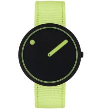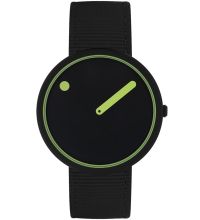 | Picto® remet en question l'idée d'une montre classique avec deux aiguilles et un cadran avec des chiffres. Ici, l'heure est indiquée par un point sur le cadran rotatif, tandis que les minutes sont indiquées par une aiguille traditionnelle. |  |