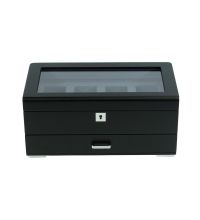 Boîte à montres noir [4] avec velours gris + Tiroir