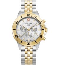 Le bracelet de haute qualité en Acier - couleur : Or, Argent - avec Boucle pliante vous procurera un plaisir supplémentaire avec votre nouvelle montre Swiss Alpine Military. Le bracelet Acier offre un grand confort et peut être porté jusqu'à un tour de poignet maximal de 215 mm.