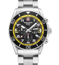qui garantit une mesure précise du temps, comme c'est habituellement le cas pour les montres Swiss Alpine Military, et qui offre les fonctions suivantes : Heure, Minute, Second, Date, Chronographe.
