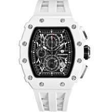 Le bracelet de haute qualité en Silicone - couleur : Blanc - avec Buckle vous procurera un plaisir supplémentaire avec votre nouvelle montre Tsar Bomba. Le bracelet Silicone offre un grand confort et peut être porté jusqu'à un tour de poignet maximal de mm.