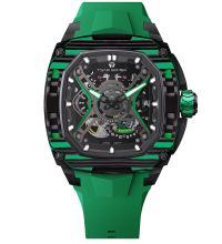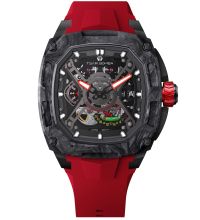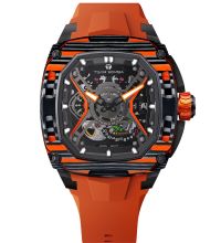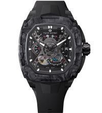 Le boîtier Coussin mesure 46 mm de large et 15 mm de hout et, selon les goûts de chacun, presque tous les poignets. La lunette Fixe, se détache discrètement du boîtier. Le fond du boîtier de la montre est un Fond en verre, fich, qui constitue le point final d'un design cohérent.