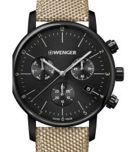 qui garantit une mesure précise du temps, comme c'est habituellement le cas pour les montres Wenger, et qui offre les fonctions suivantes : Chronographe, Date, Minute, Second, Heure.