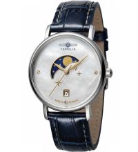qui garantit une mesure précise du temps, comme c'est habituellement le cas pour les montres Zeppelin, et qui offre les fonctions suivantes : Date, Minute, Phase de la lune, Second, Heure.