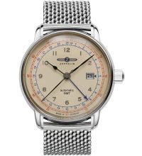 automatique qui garantit une mesure précise du temps, comme c'est habituellement le cas pour les montres Zeppelin, et qui offre les fonctions suivantes : Heure, Minute, Second, Date, GMT, Deuxième fuseau horaire.