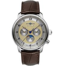 qui garantit une mesure précise du temps, comme c'est habituellement le cas pour les montres Zeppelin, et qui offre les fonctions suivantes : Heure, Minute, Second, Date, Jour de la semaine, Phase de la lune.